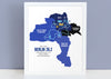 The perfect gift for a Berlin 26.2 Marathoner. This course map features a colored silhouette of each the areas marathon runners go through as well as icons and text for some of the marathon route's most infamous landmarks.