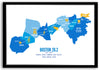 The perfect gift for a Boston 26.2 runner. This course map features a colored silhouette of each of the towns marathon runners go through as well as icons and text for some of the marathon route's most infamous landmarks.