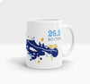 From Hopkinton, through Wellesley, to the finish line in Boston. Blue splatters create the route of this infamous marathon. Perfect gift for a runner who is working on a BQ or one who already ran the big race. Available in 11oz or 15 oz. Dishwasher/microwave safe
