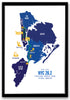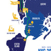 The perfect gift for a New York City 26.2 runner. This course map features a colored silhouette of each the boroughs marathon runners go through as well as icons and text for some of the marathon route's most infamous landmarks.